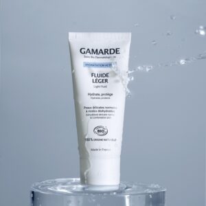 Aqua (Water), Helianthus annuus (Sunflower) seed oil, cellulose, cetearyl alcohol, Argania spinosa kernel oil, cetearyl glucoside, Gamarde aqua (Gamarde Water), Lavandula hybrida (Lavandin) oil, Citrus medica limonum (Lemon) peel oil, Eugenia caryophyllus (Clove) bud oil, parfum (Fragrance), phenethyl alcohol, citric acid, citral, citronellol, coumarin, eugenol, geraniol, limonene, linalool.